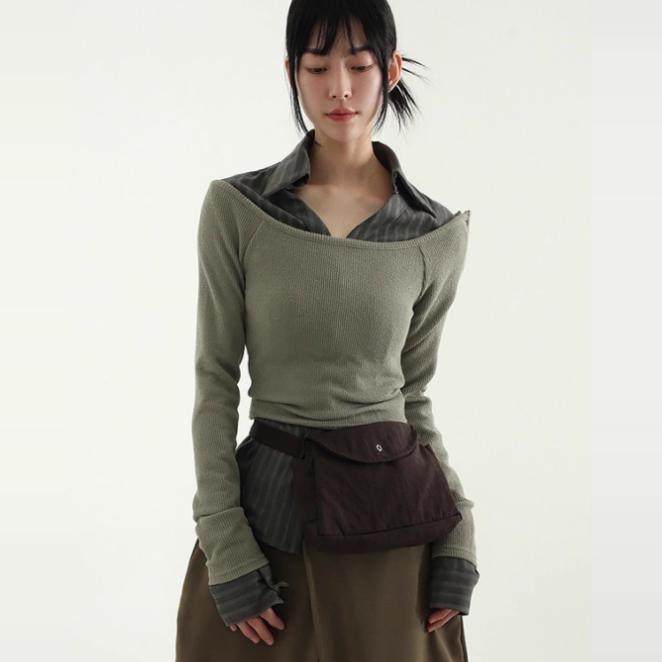 shoulder T恤 长袖 tee golgi off hole back 25A 韩国代购