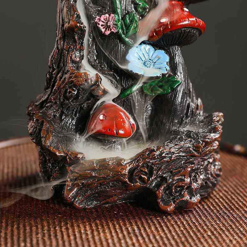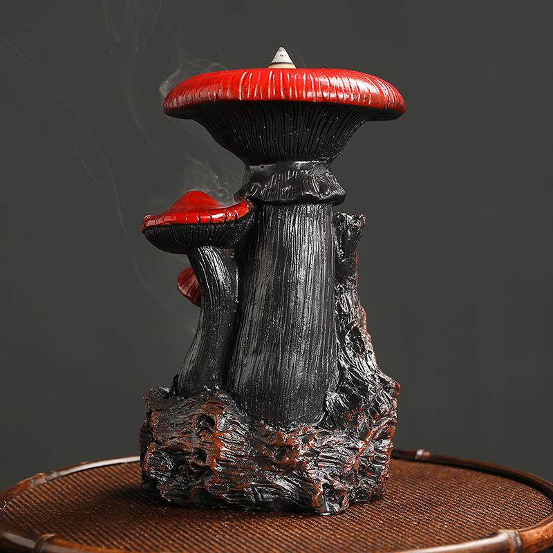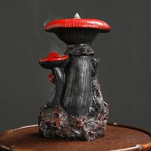 跨境工艺品树脂倒流香香薰炉 创意北美风蘑菇倒流香薰炉家居摆件