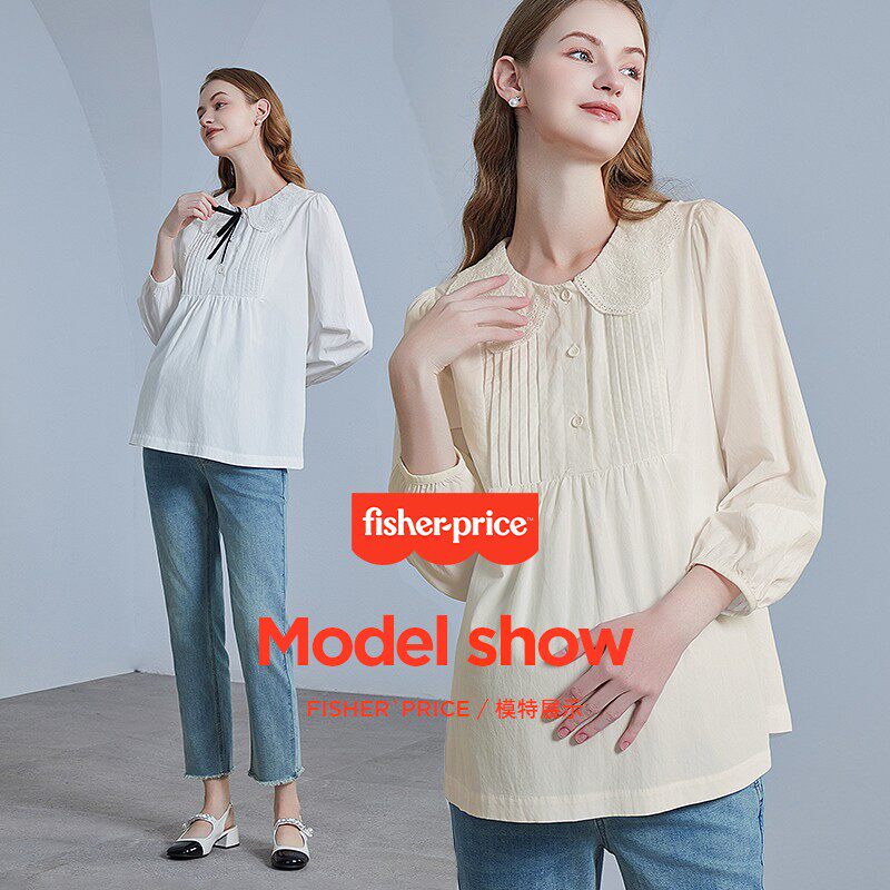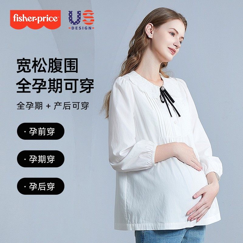 中长款 2026新款 娃娃衬衫 时尚 女 费雪孕妇装 潮妈全棉上衣春装 春秋季