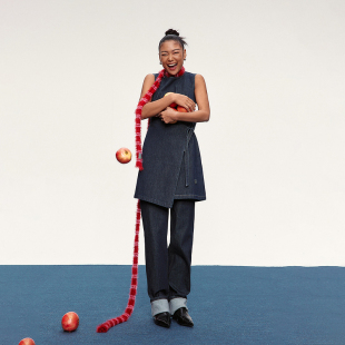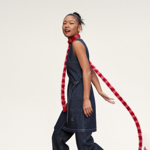 新品 连衣裙A字设计感绑带2025春季 四面弹牛仔无袖 ochirly欧时力