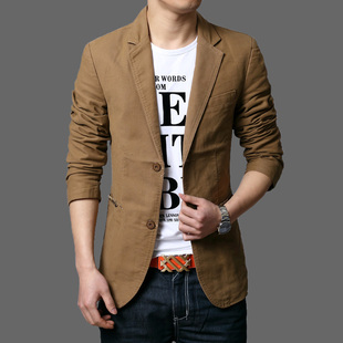 韩版 单西便装 修身 大码 潮男纯色工装 春秋休闲西服外套男纯棉小西装