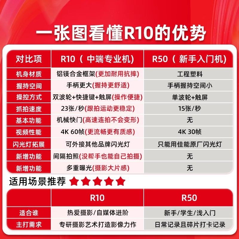 佳能r10微单高清数码 Canon 旅游家用r10微单相机R10 12期免息