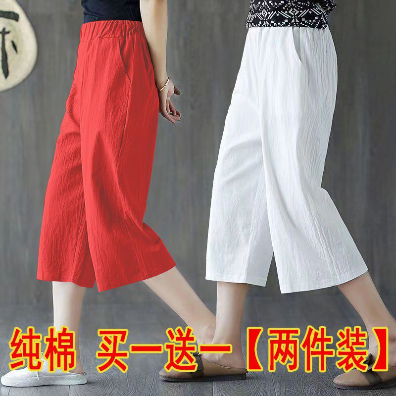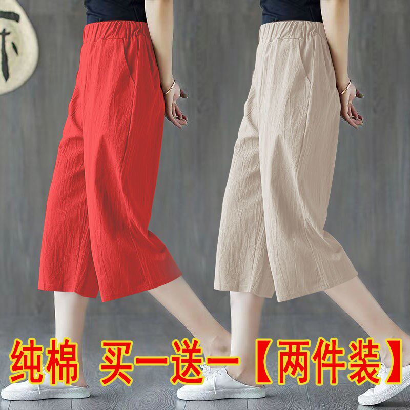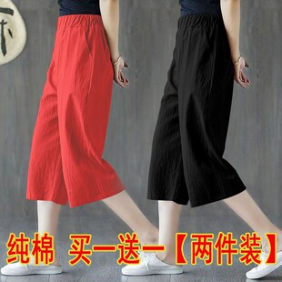 两件 女垂感休闲七分裤 松紧腰夏季 宽松百搭显瘦高腰阔腿裤 新款 单