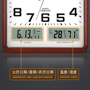 北极星客厅静音方形大挂钟日历石英钟创意钟表现代简约时尚 家用钟