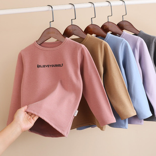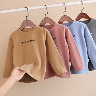 儿童磨毛加厚德绒打底衫 冬男女童保暖圆领内衣秋衣中大童T恤睡衣