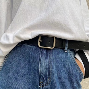 带 腰带潮流年轻男女通用复古简约百搭裤 针扣皮带男韩版 ins牛仔裤