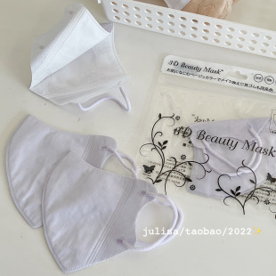 5片装 奶味紫轻薄透气一次性3D不易花妆防护口罩显白修饰脸形 日单
