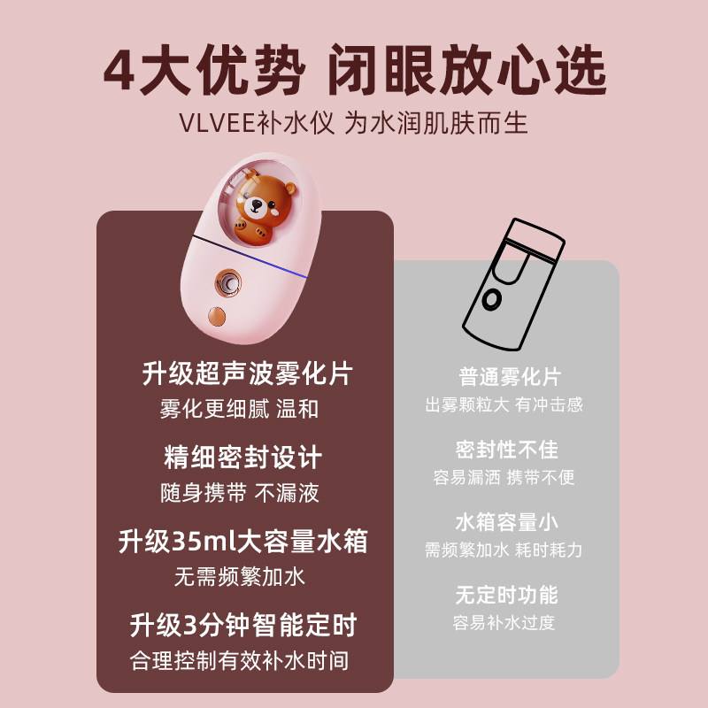 法国VLVEE补水仪纳米喷雾器美容仪小型手持可爱少女心便携式 充电