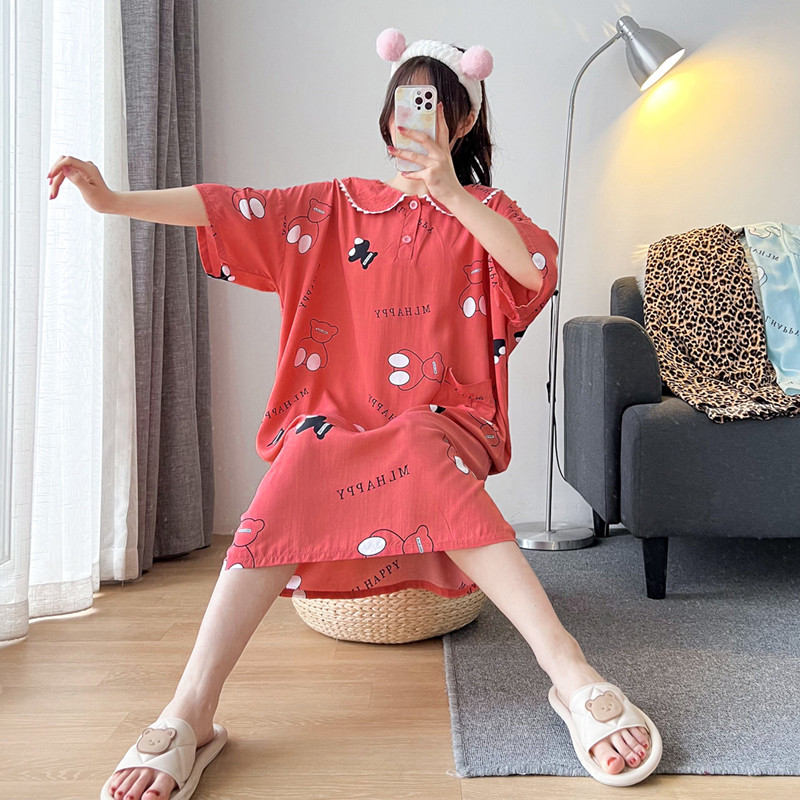 日系睡衣女秋冬季 毛绒可爱卡通印花宽松连帽家居服睡裙 加厚长袖