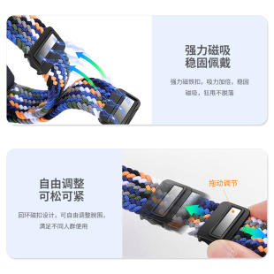 11表带磁吸编织智能手表尼龙弹力腕带7NFC版 运动手环透气磁扣表链男女生夏天配件 适用华为手环8