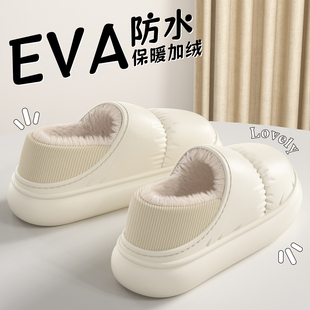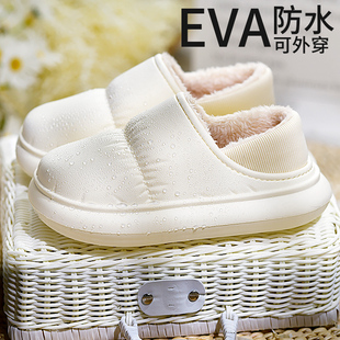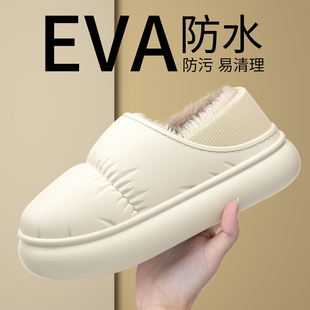 男外穿 包跟加绒室内家居保暖厚底防水月子棉鞋 踩屎感棉拖鞋 女冬季