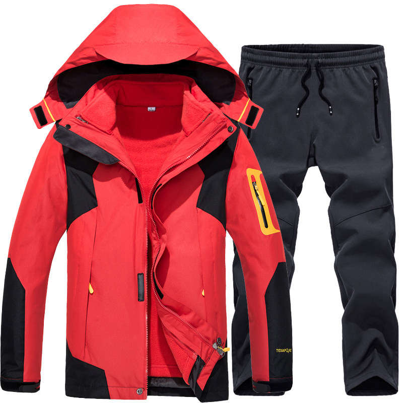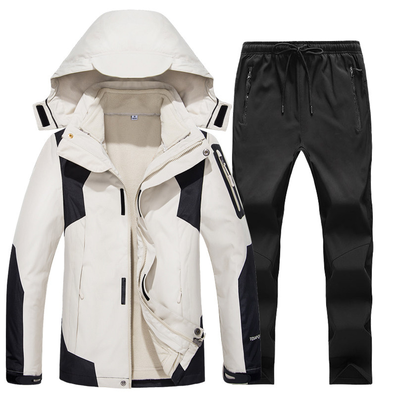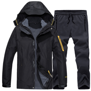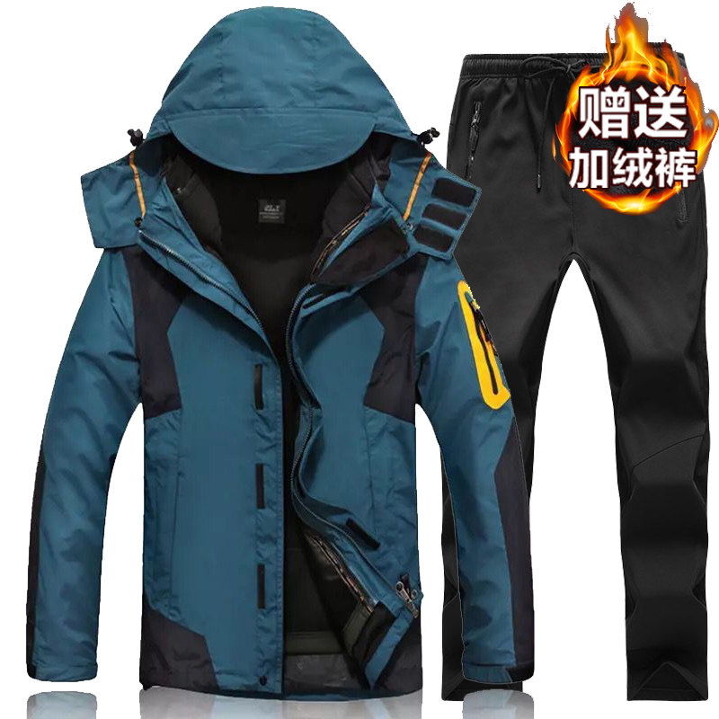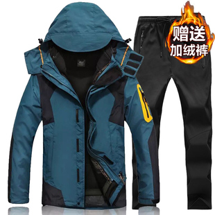 套装 啄木鸟秋冬季 户外冲锋衣男三合一两件套可拆卸加绒加厚女衣裤