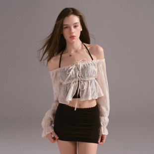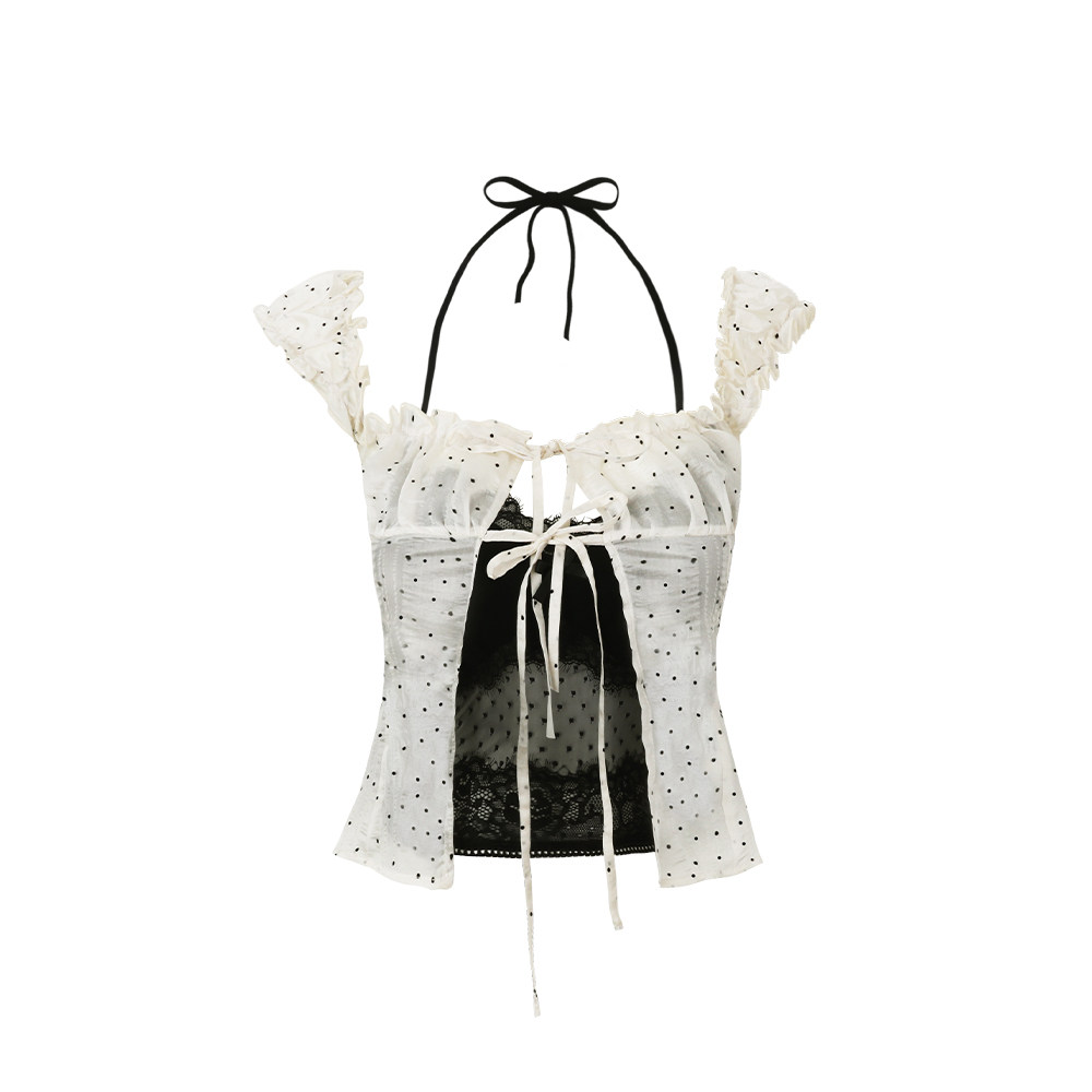 吊带上衣女 辣妹设计感纯欲性感绑带波点蕾丝雪纺短款 Mess Studio