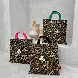 日韩2025新款 百搭豹纹米老鼠托特包小众大容量配色可爱手提包