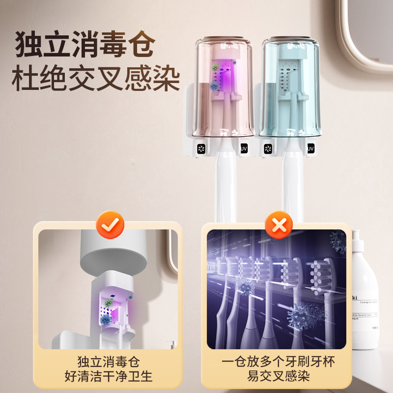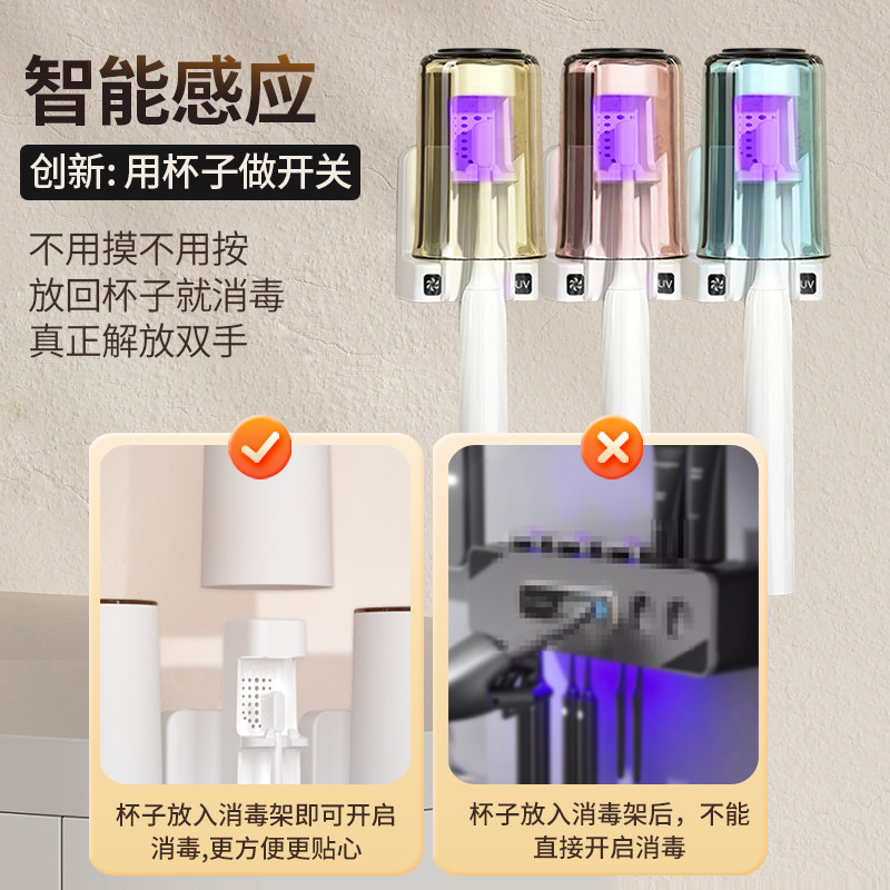 KOFS牙刷消毒器浴室一家三口智能电动壁挂牙杯牙刷置物架杀菌烘干
