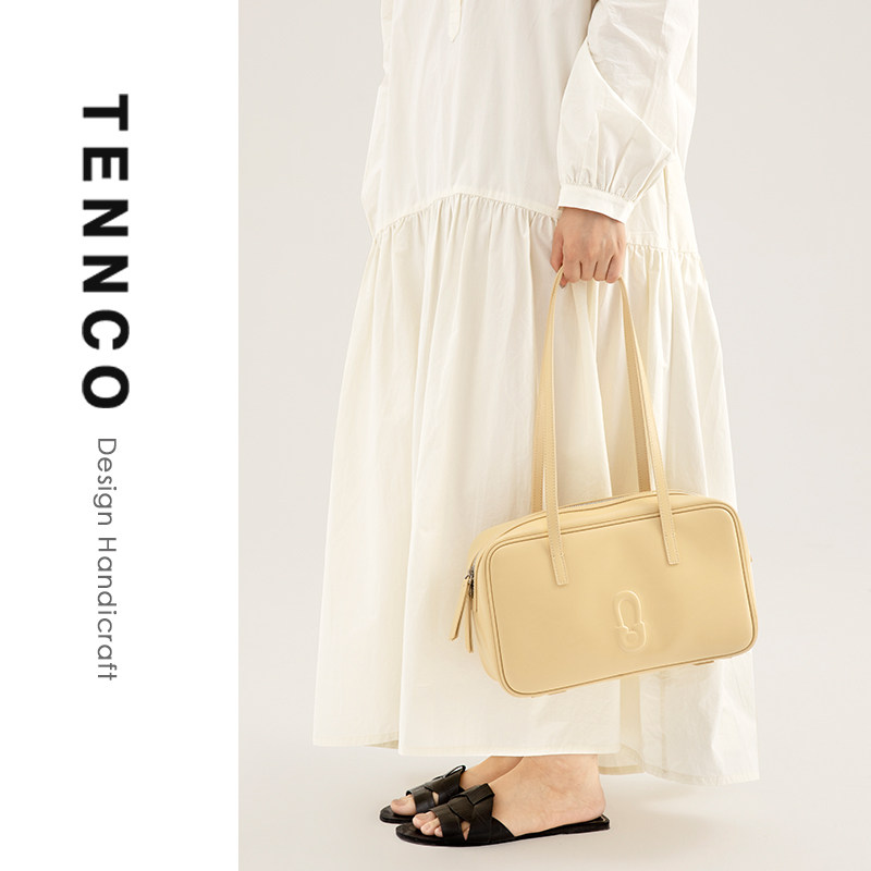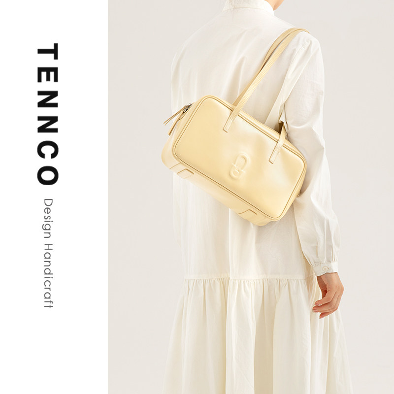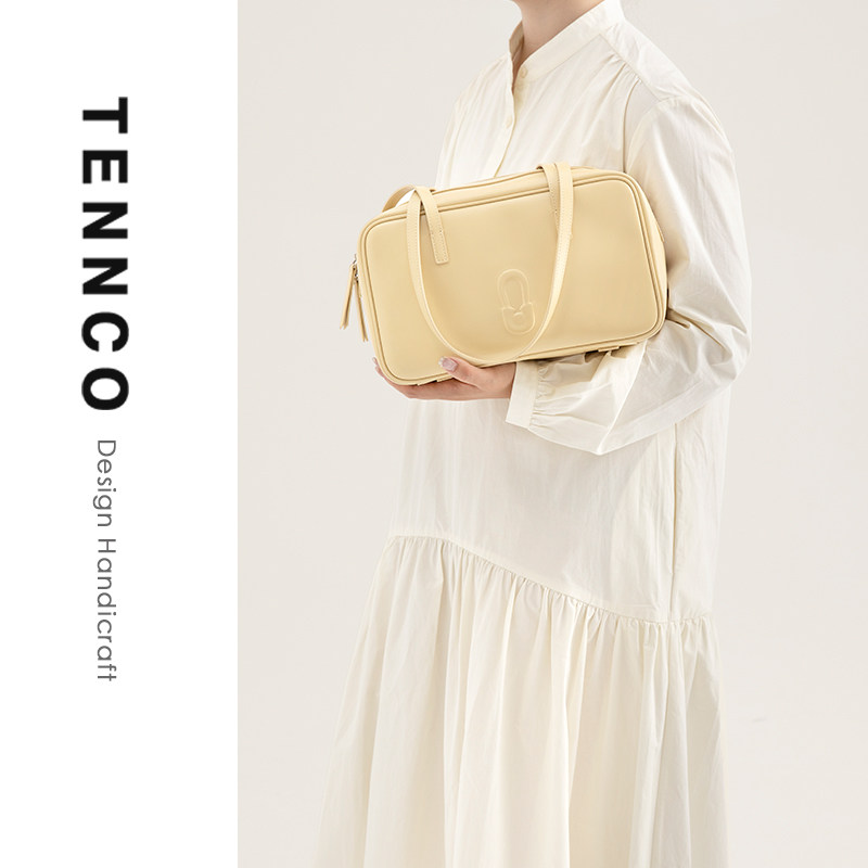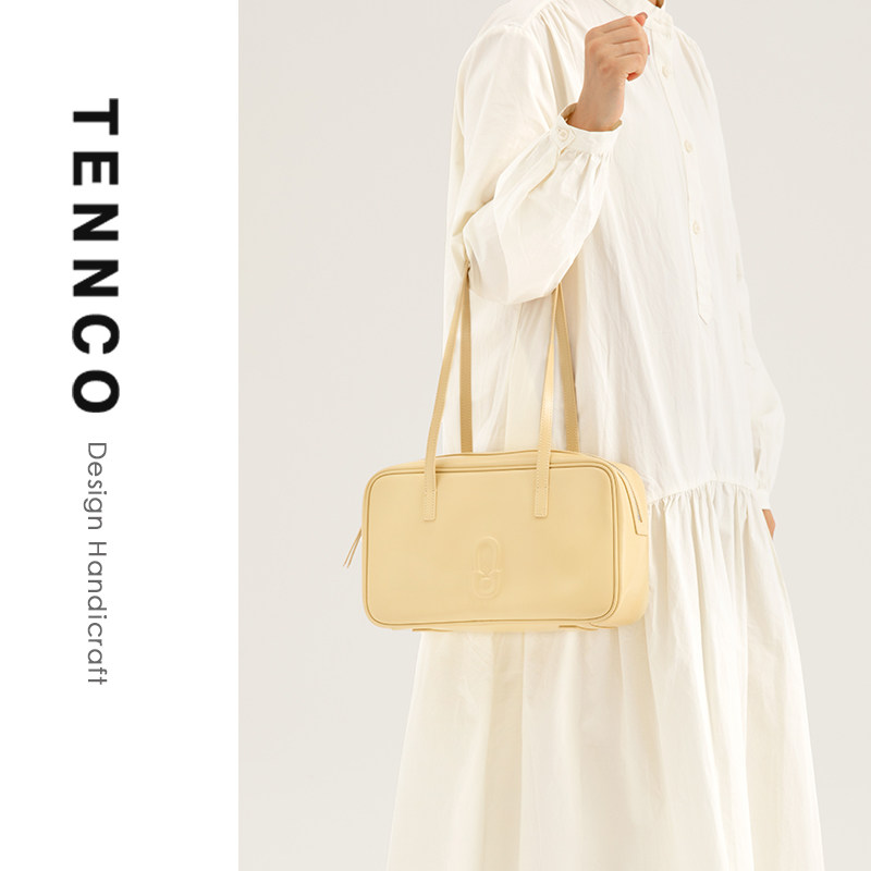 TENNCO原创 头层牛皮通勤腋下包百搭大容量单肩托特包 保龄球包
