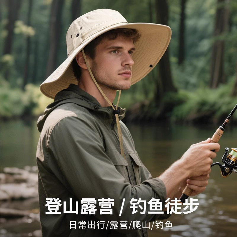啄木鸟大头围登山帽子男士 大檐防晒太阳帽户外钓鱼遮阳渔夫帽 夏季