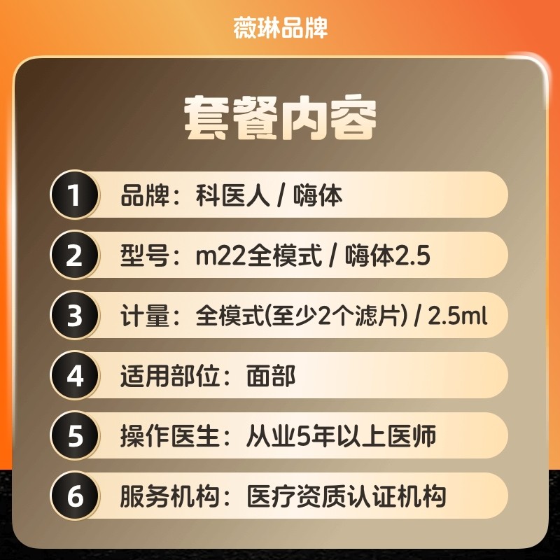 嗨体水光针2.5ml美白保湿 科医人黄金超光子嫩肤m22全模式