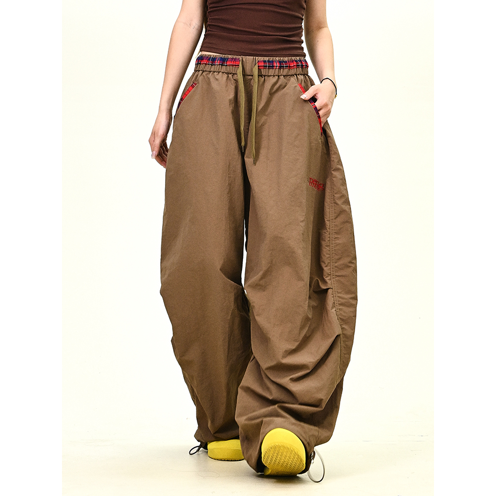 宽松Bf街头弯刀阔腿裤 怕麻烦咖啡色伞兵工装 新款 女2025夏季 休闲裤