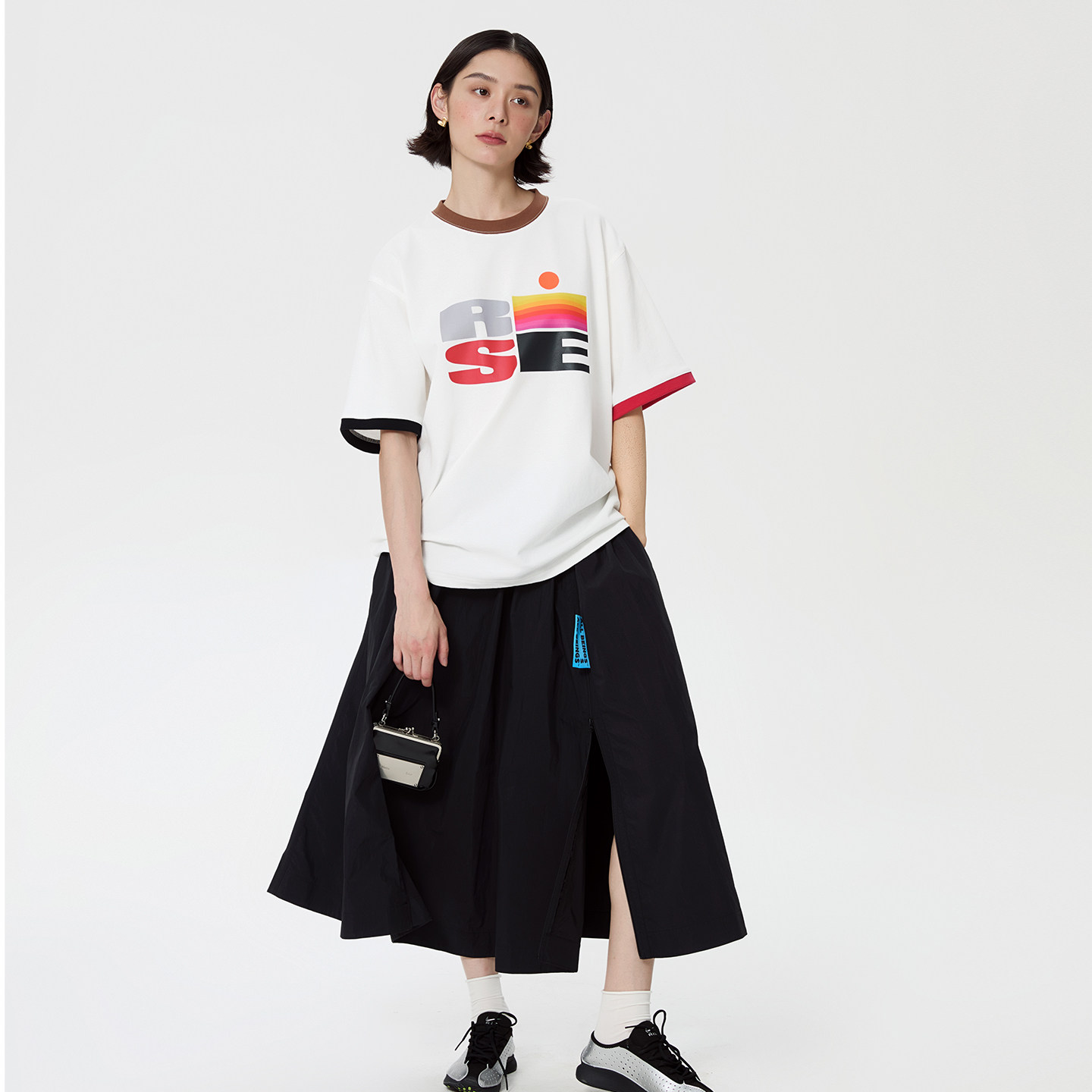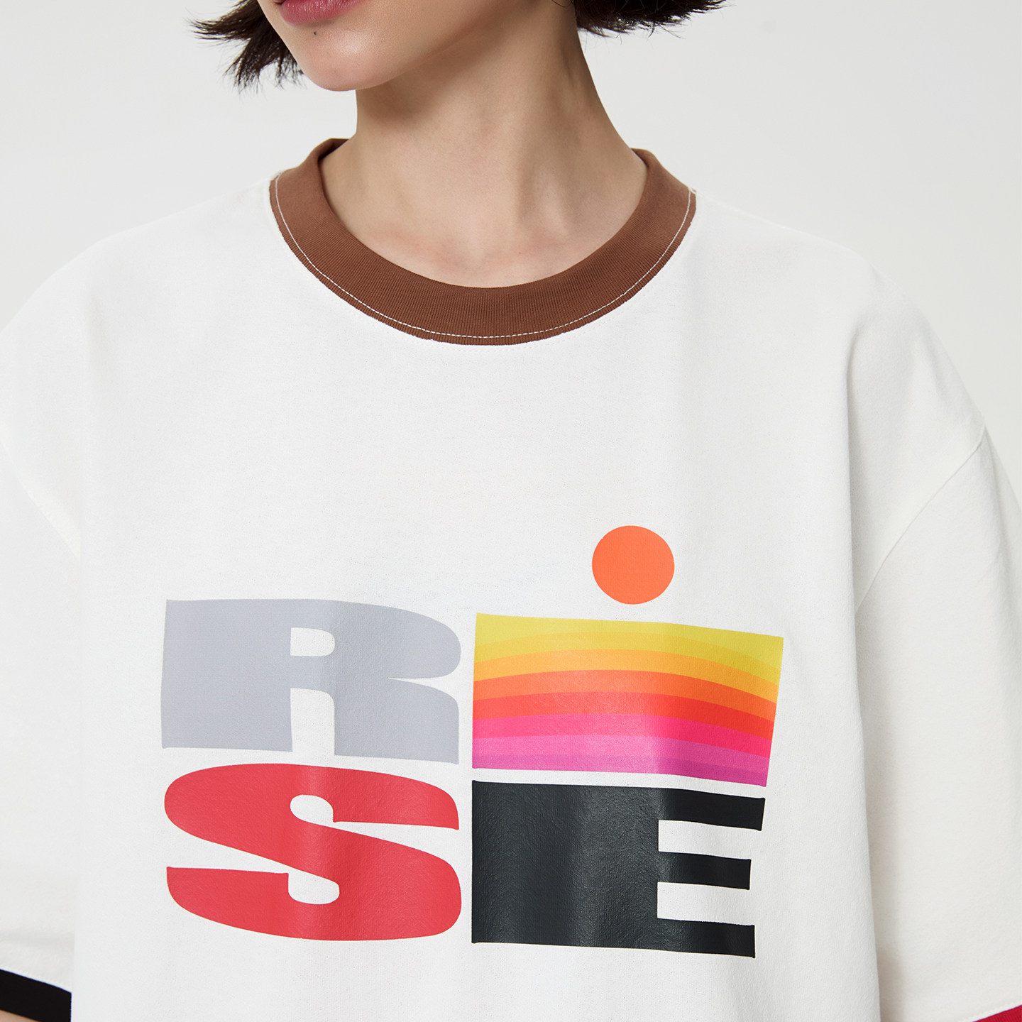 设计感字母印花撞色圆领短袖 新款 宽松T恤女 BEINGS25SS夏季 ALL
