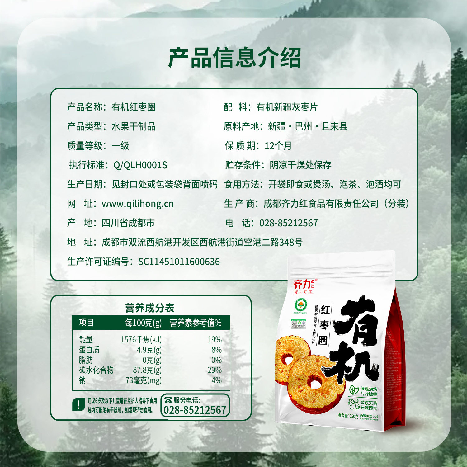 齐力有机红枣圈250g 中段红枣片酥脆即食泡水泡茶灰枣片 8小包