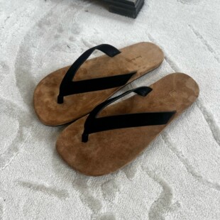 AMBSOM松弛随性百搭ROW风意大利胎牛反绒防滑平底人字拖拖鞋 男女