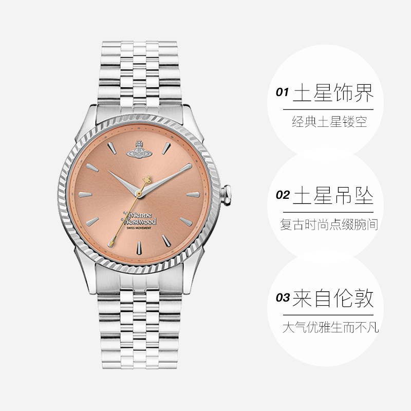 简约休闲时装 viviennewestwood时尚 表桃色钢带腕女表石英 自营