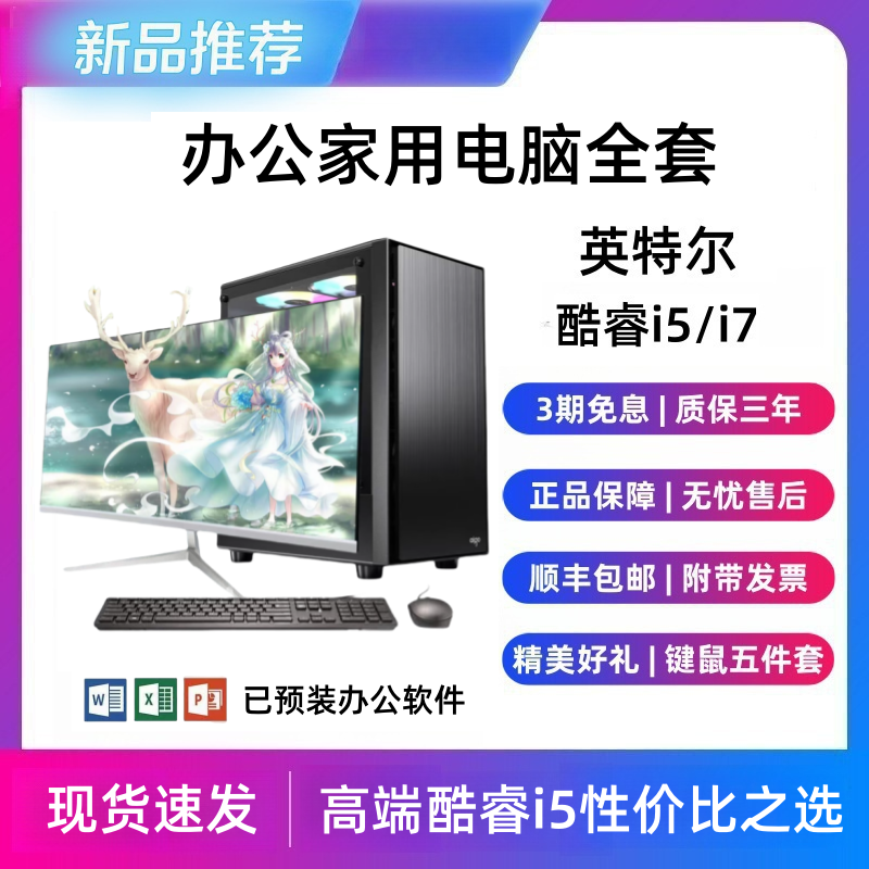 台式 英特尔酷睿i5 组装 企业办公直播设计CAD 电脑主机全套 i7电脑