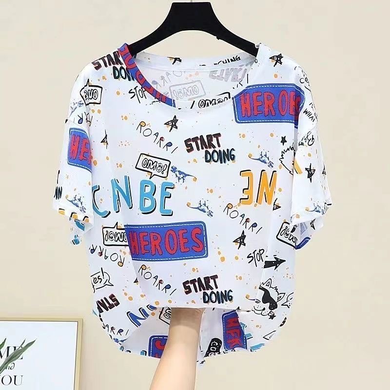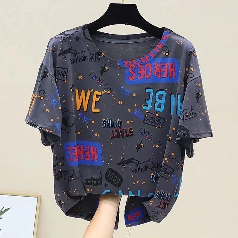 宽松洋气显瘦短袖 2025夏季 印花T恤女韩版 百搭短袖 女上衣潮流 新款