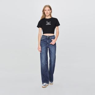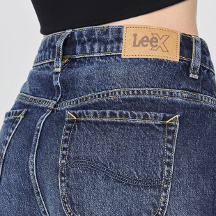 舒适高腰直脚中深蓝女牛仔裤 Lee428懒懒裤 潮A08854 张凌赫代言