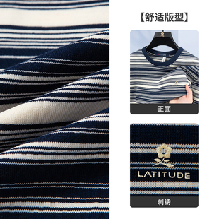 夏季 T恤2025新款 条纹圆领上衣亲肤透气体恤Z 短袖 梦特娇长绒棉男士