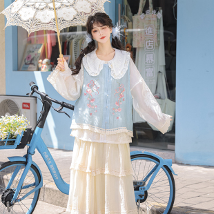 娃娃领 刺绣比甲半身裙明制改良汉服文艺衬衫 凤台曲原创 风铃语