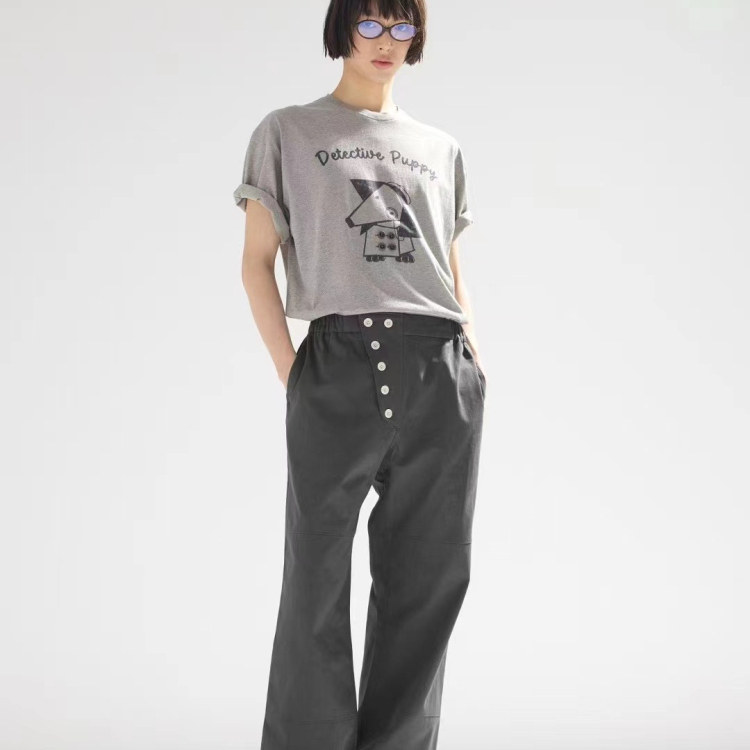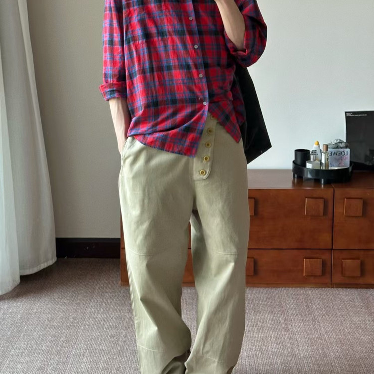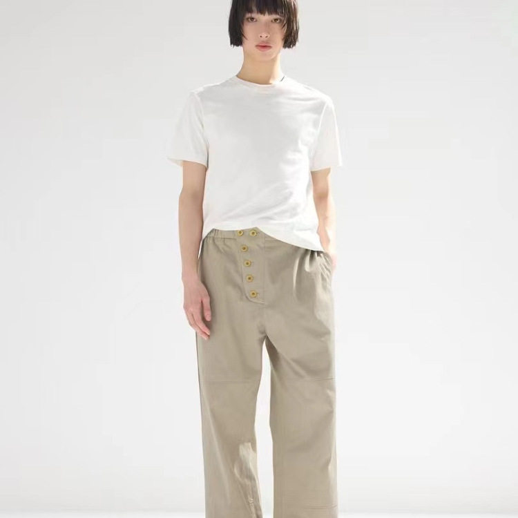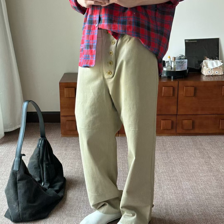 果实扣排扣斜襟拼接层次直筒休闲长裤 Prefab Epide 实体现货