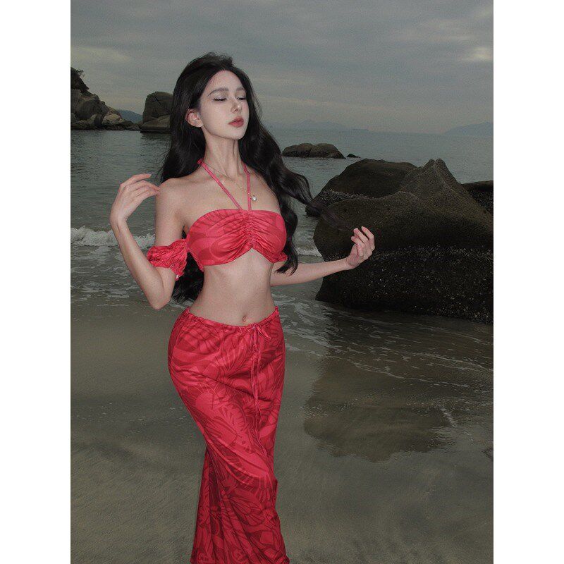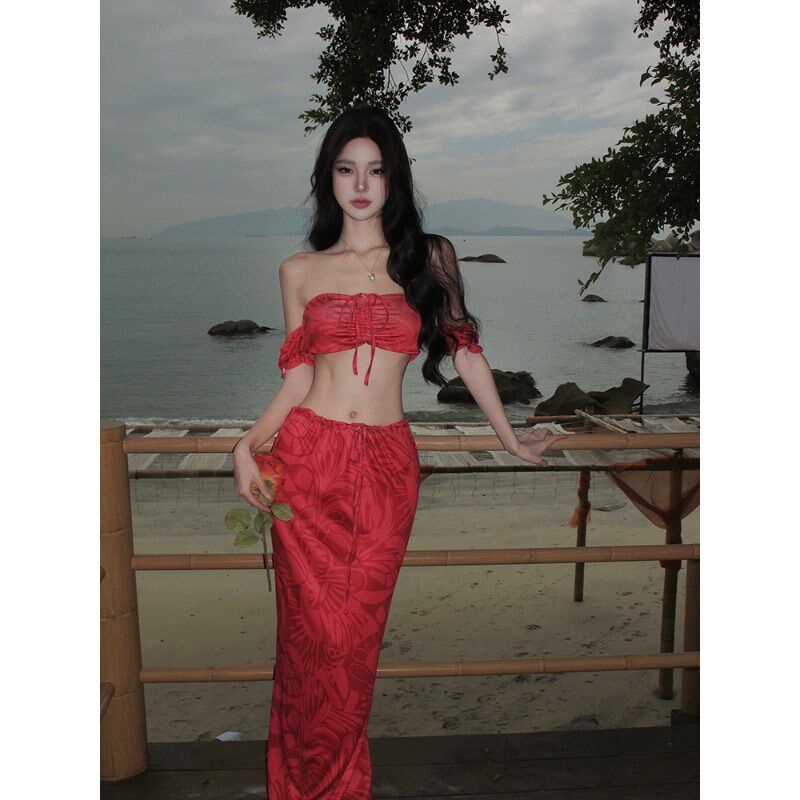 新品 裙女沙滩裙 三亚泰国g旅游穿搭性感抹胸辣妹海边度假分体套装