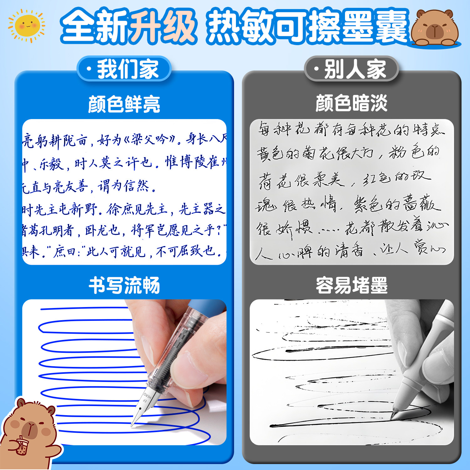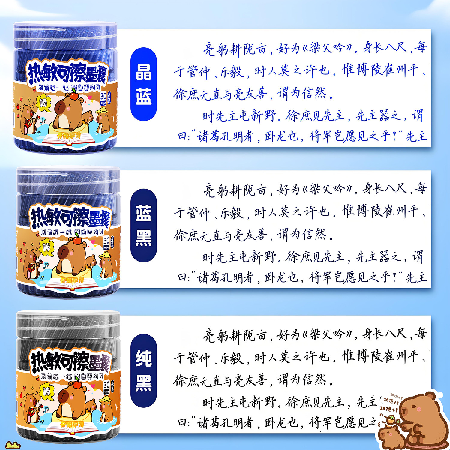 英雄热可擦墨囊热敏可擦墨囊晶蓝三年级钢笔小学生专用墨囊可替换黑色热敏易擦可换墨囊3 6年级练字3.4mm口径