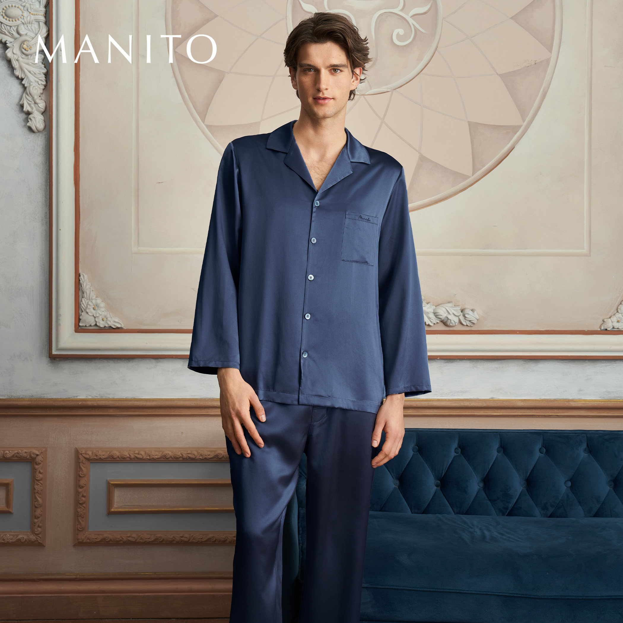 长裤 MANITO 桑蚕丝睡衣长袖 家居服套装 曼尼陀Chemise可机洗男士
