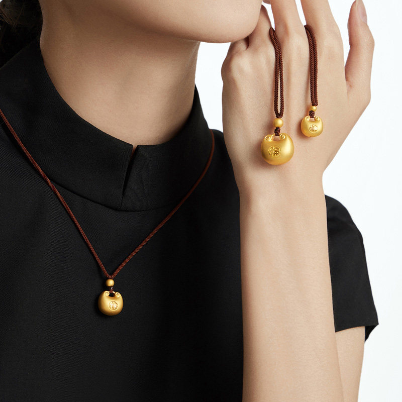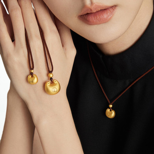 潮宏基臻金弘足金项链5G拉丝黄金坠链丝绒葫芦钱币礼物新年 计价