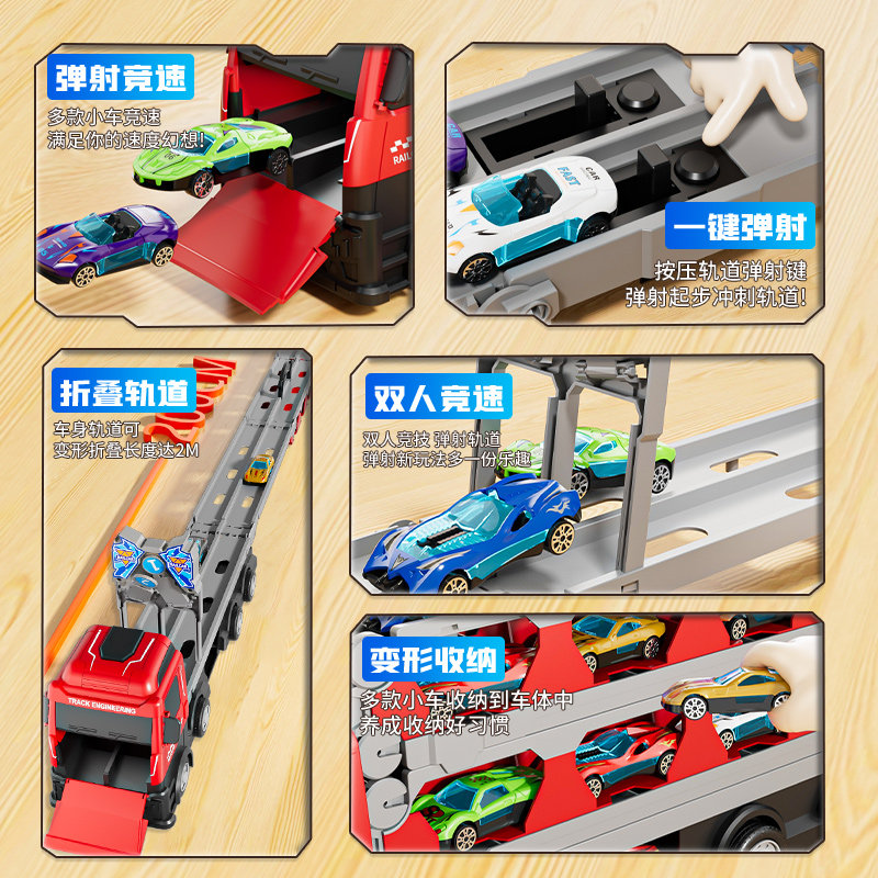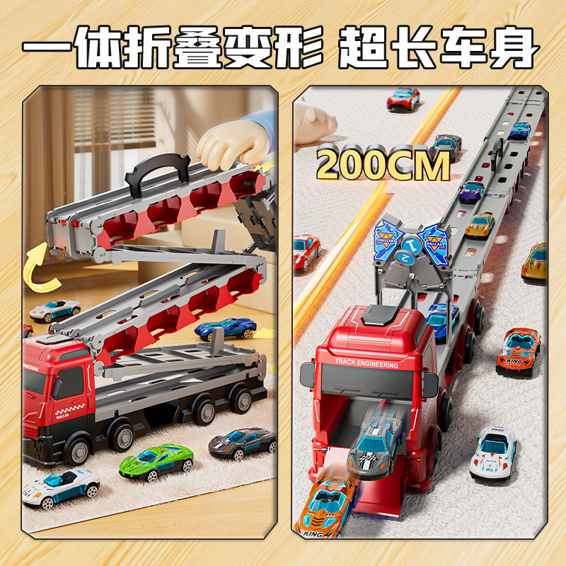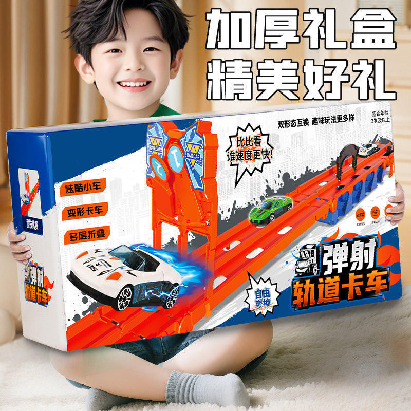 儿童轨道玩具车卡车变形滑行弹射合金收纳小汽车男孩子圣诞礼物3