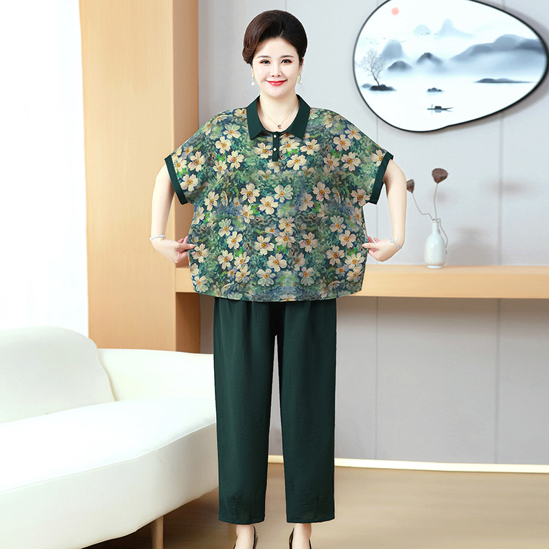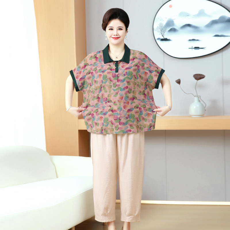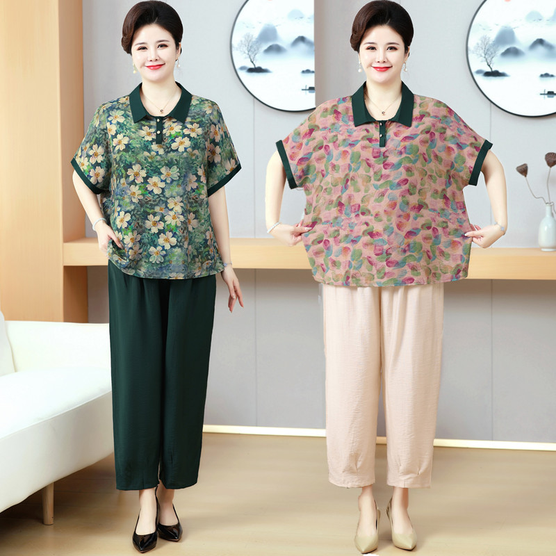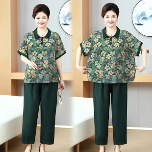 200斤短袖 胖妈妈夏装 加肥上衣服中老年人特大码 套装 T恤两件套 时尚