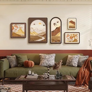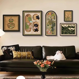 中古风客厅装 复古沙发背景墙挂画高级感小众艺术组合壁画 饰画法式