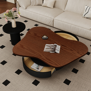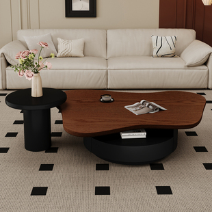 臻品阁可折叠旋转移动茶几小推车小户型沙发边几边柜两用餐桌茶桌