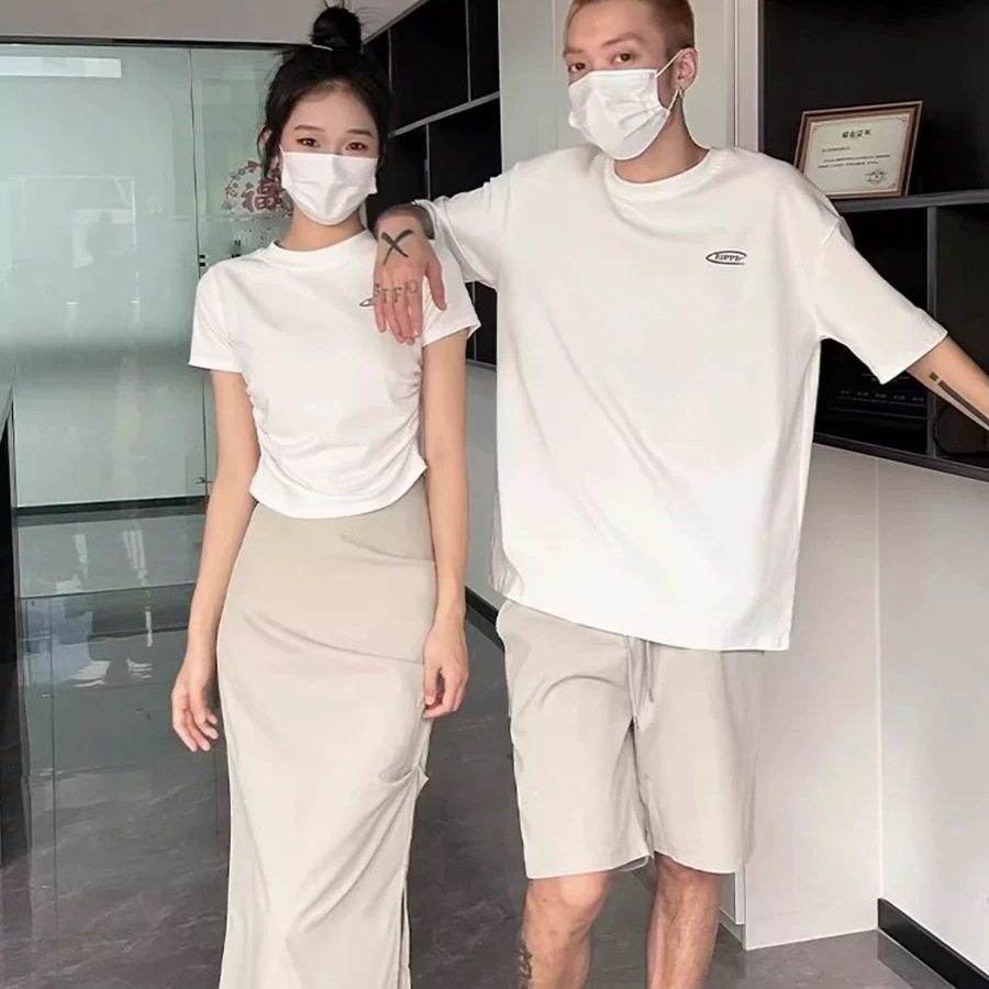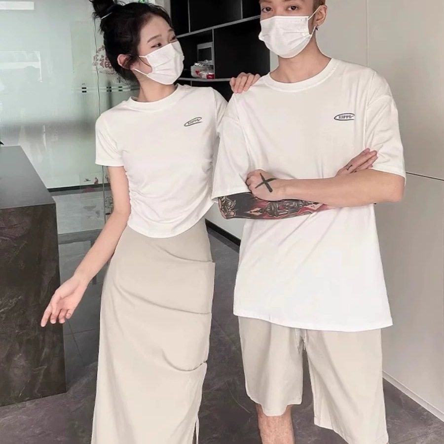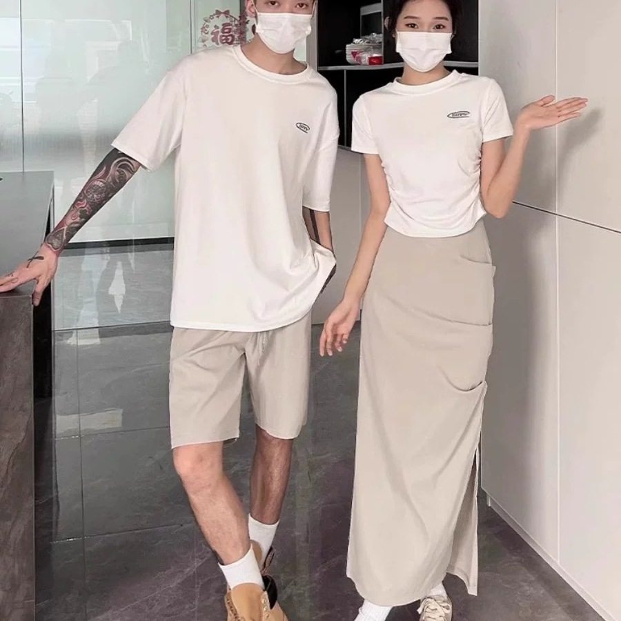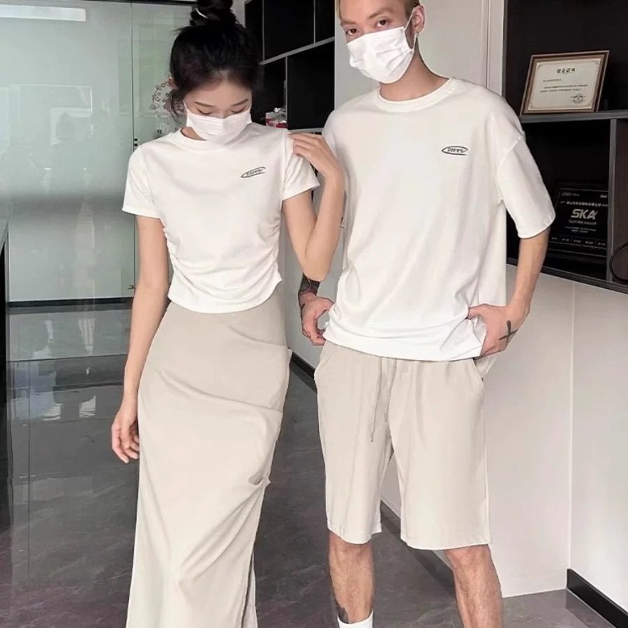 夏季 法式 2025新款 T恤女半身裙两件套装 一衣一裙 高级感短袖 情侣装
