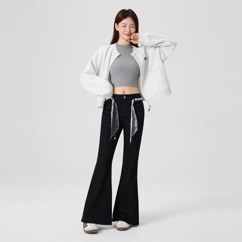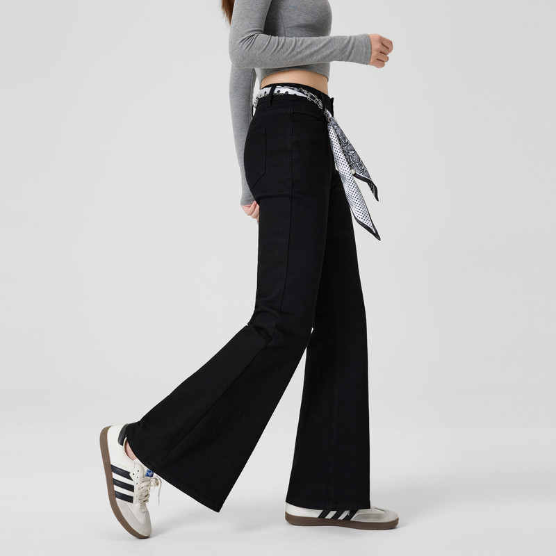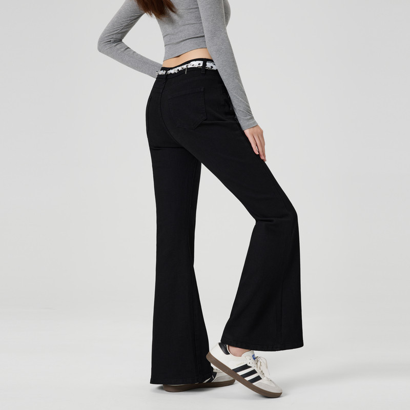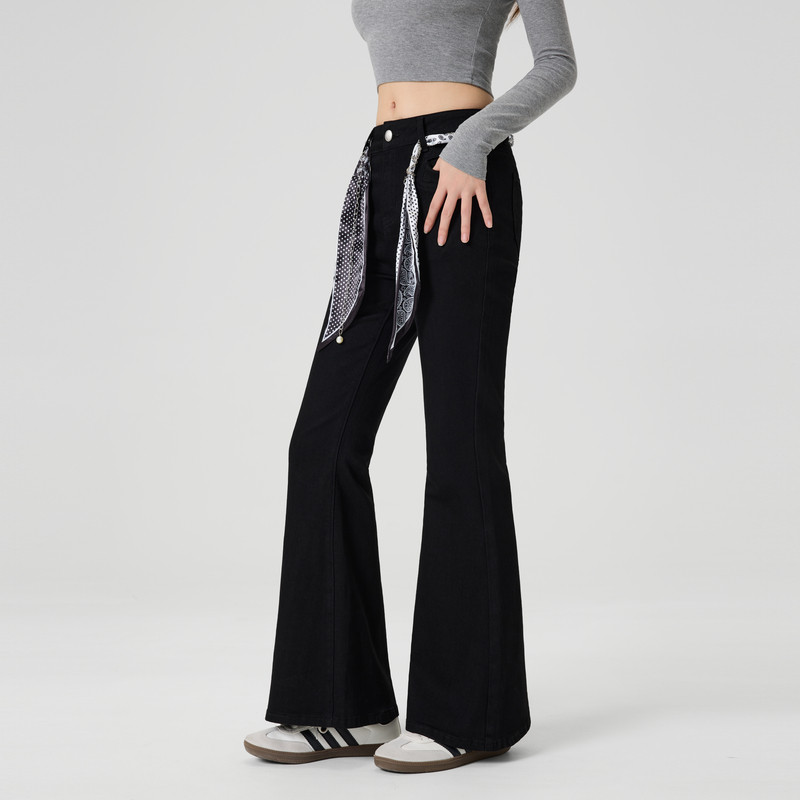 显瘦高腰女裤 新丝巾腰带修身 子 女2025年秋季 快鱼微喇微紧身牛仔裤