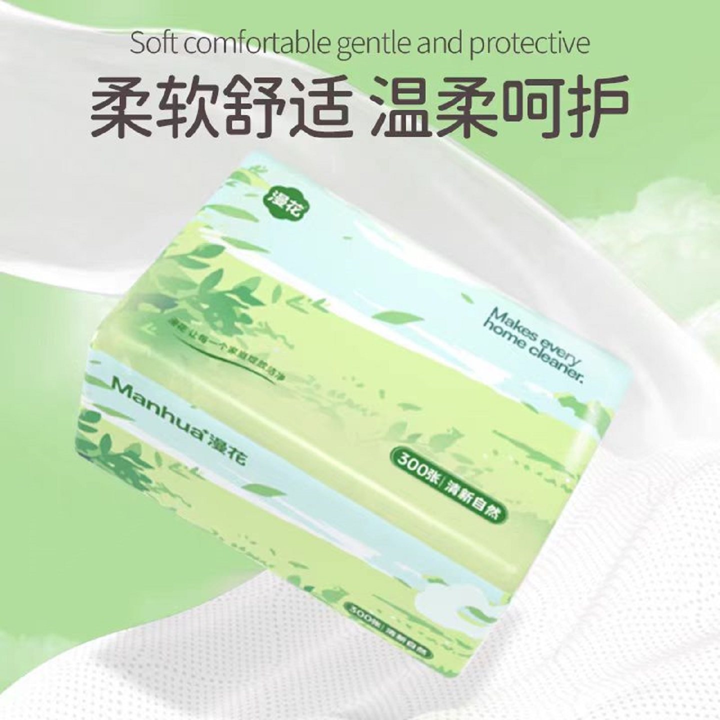 漫花300张原生木浆四层加厚便携收纳气垫压花运动紧急用品