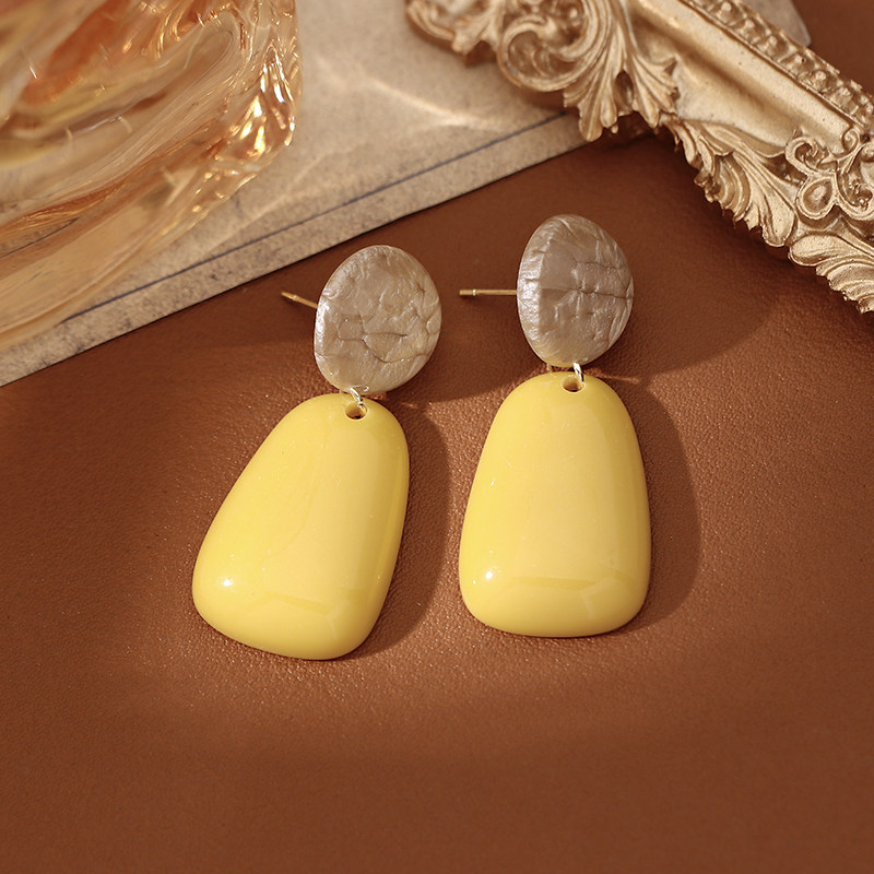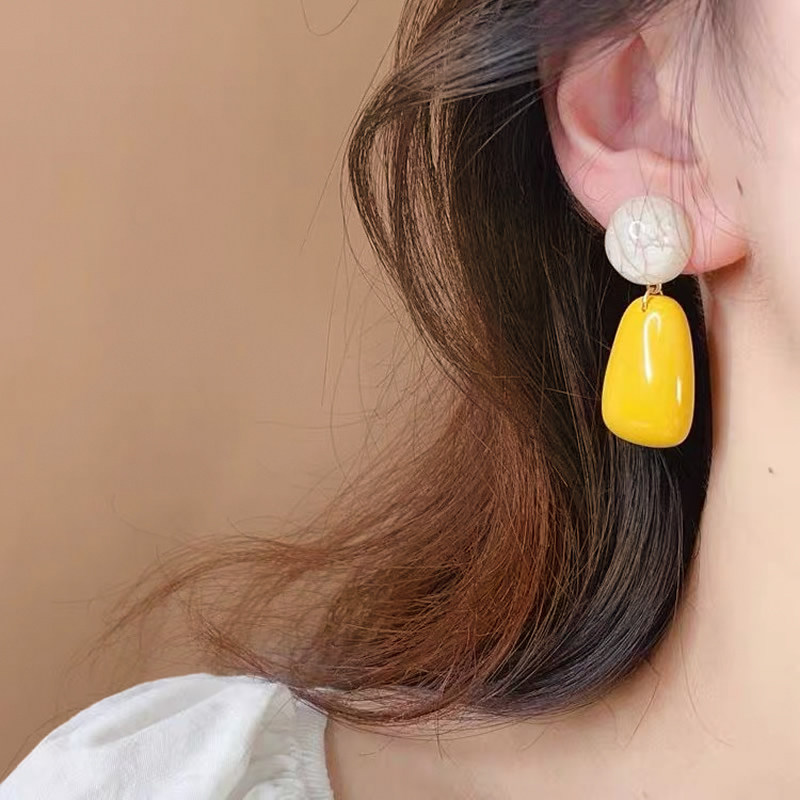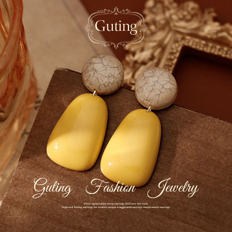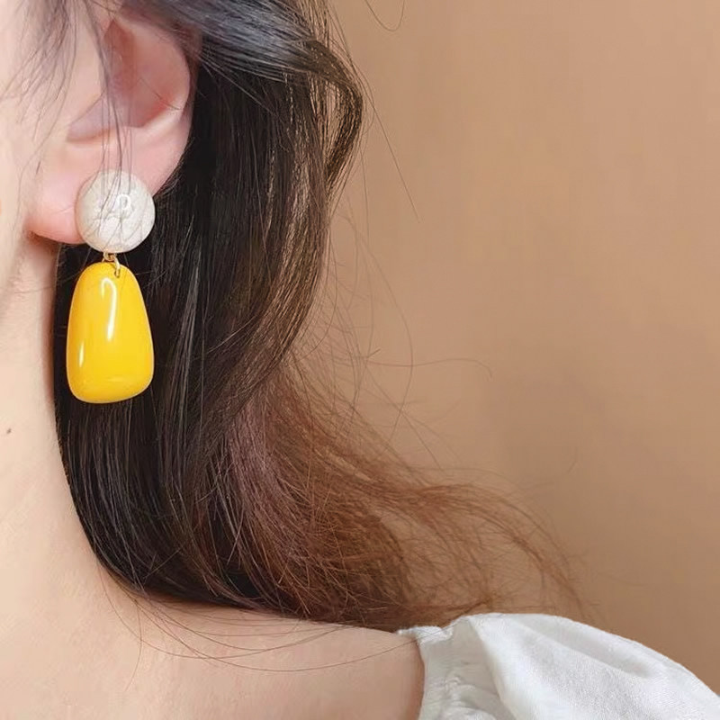 黄色几何耳环女度假风2026新款 高级感轻奢耳钉巨好看独特漂亮耳饰