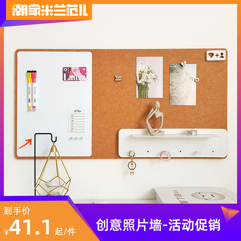 照片墙毛毡板留言板洞o板软木板磁白板墙贴幼儿园置物架免打孔相