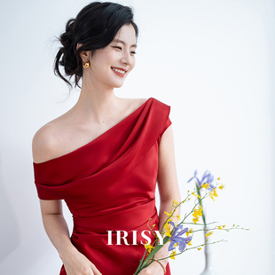 IRISY「红杉」红色订婚礼服法式 斜肩轻奢高端小众新娘结婚敬酒服