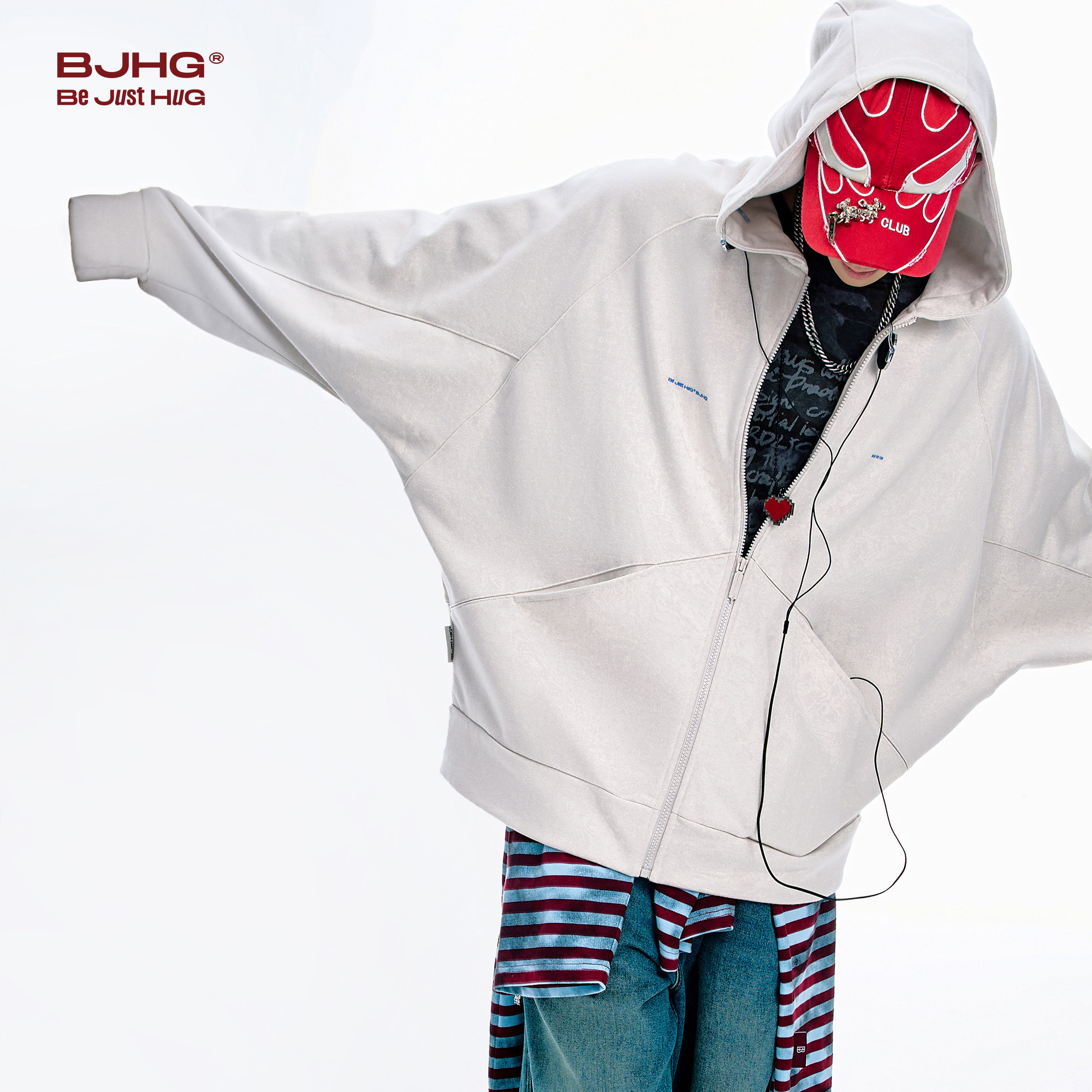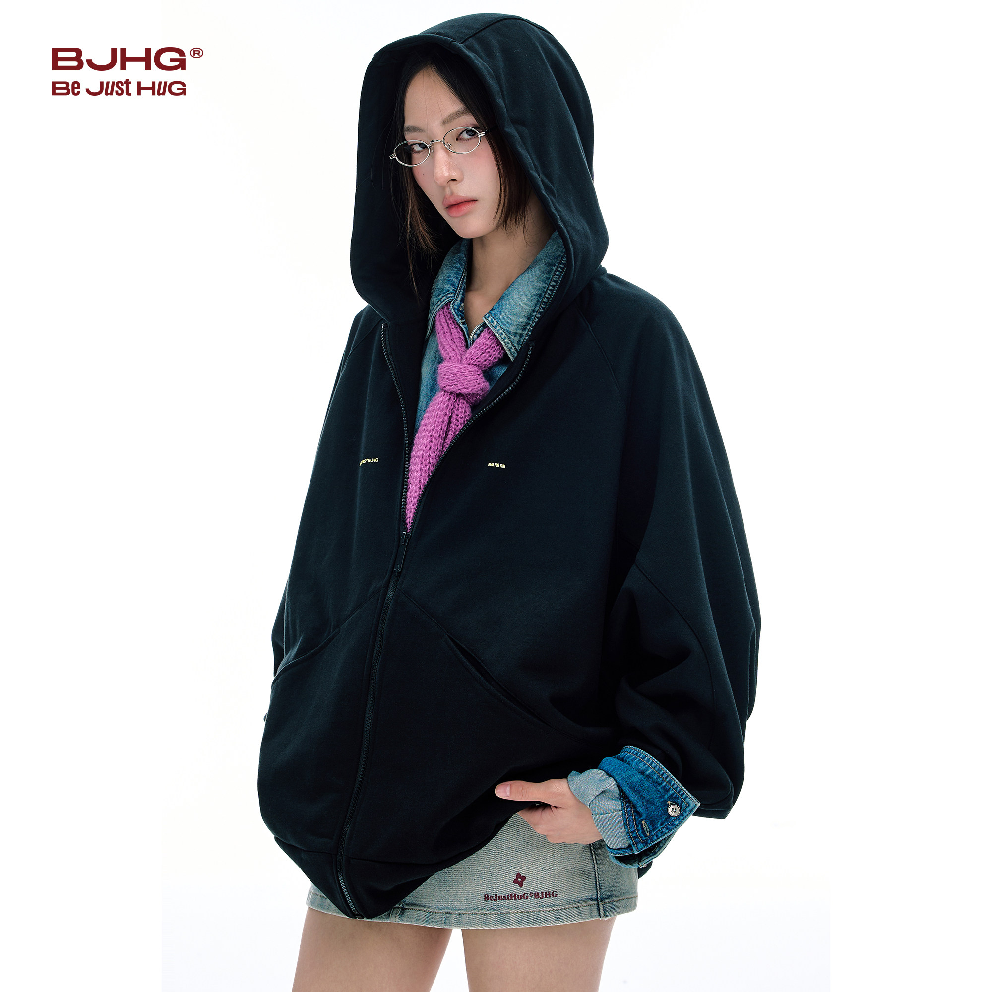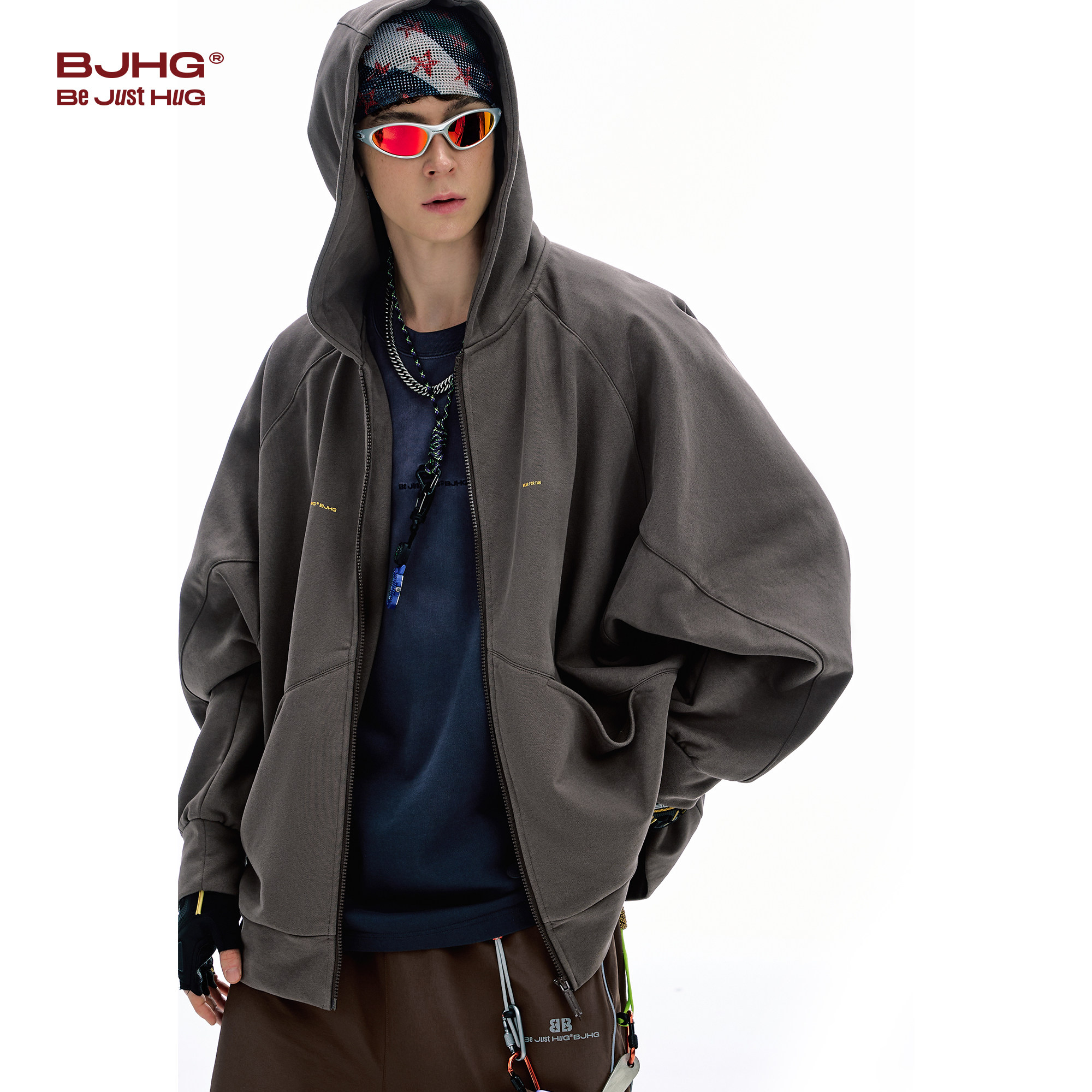 宽松蝙蝠袖 BJHG不计后果美式 暖皮针织开衫 冬季 连帽外套女 卫衣男款
