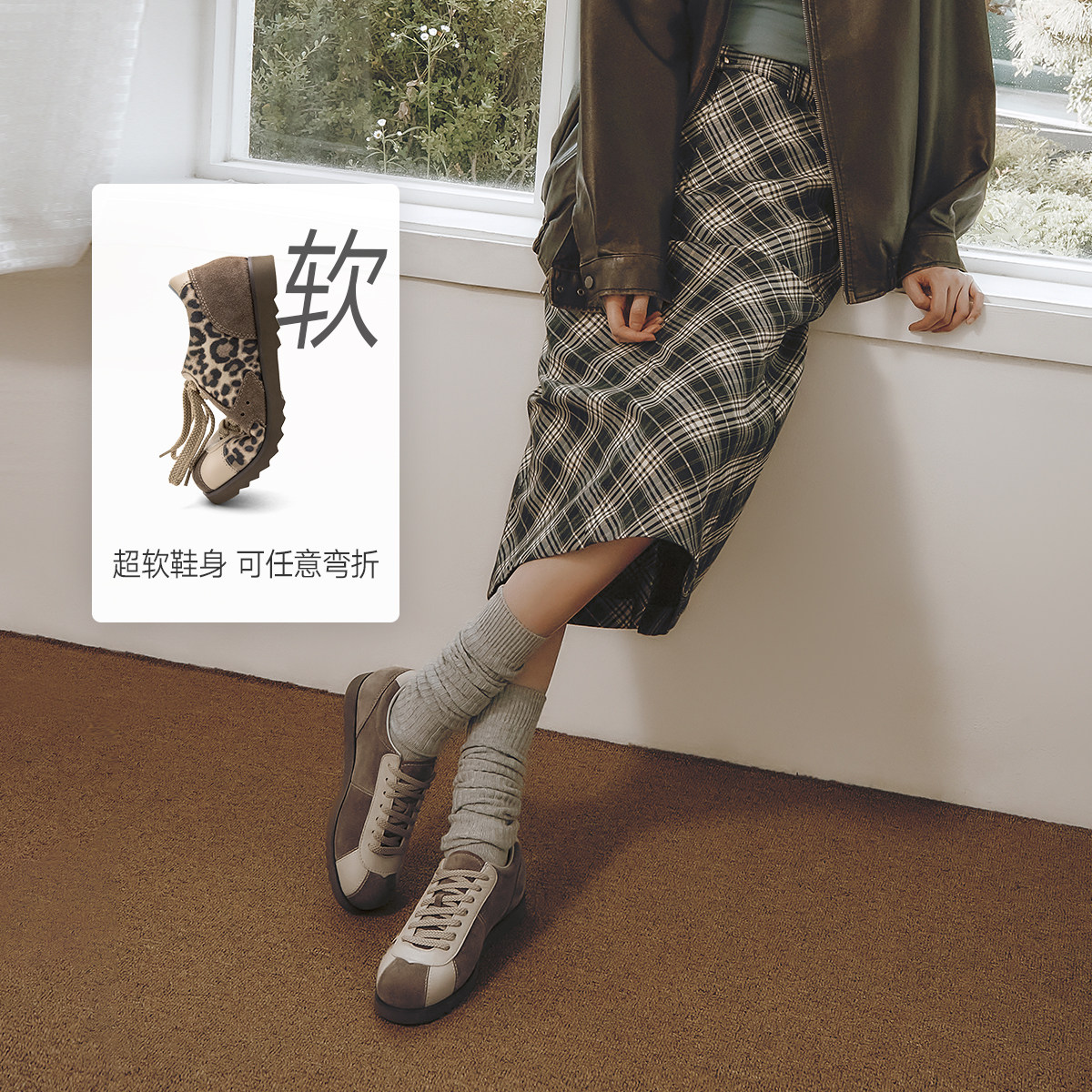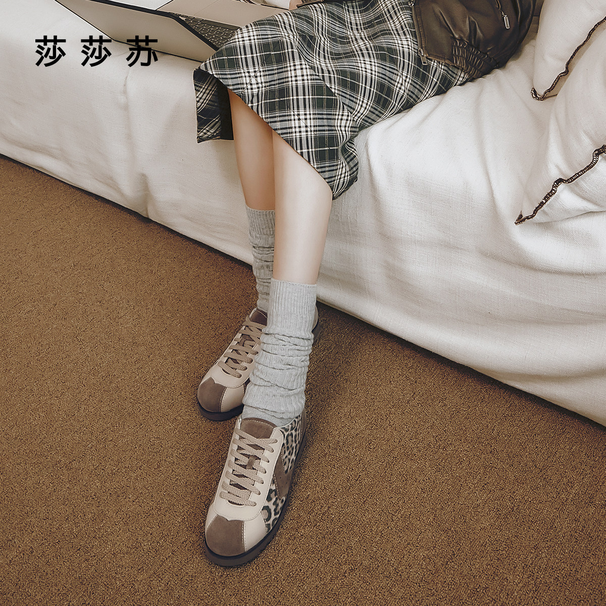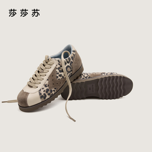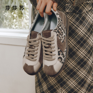 增高运动休闲鞋 板鞋 莎莎苏2025秋冬新款 复古豹纹德训鞋 夹心饼干