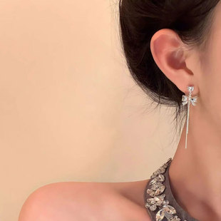 高级设计感不对称蝴蝶流苏耳环韩国气质个性 耳饰耳钉银针 网红AB款